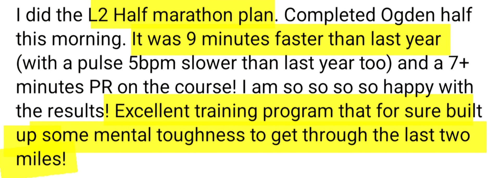 Whether you’re building from the couch, gunning for a sub-2 half, tackling your first full marathon, or looking to set a qualifying time, our downloadable training plans are designed with the same structure, science, and strategy we use with our 1:1 athletes.